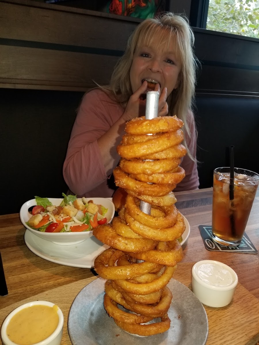 Huge selection of beers Gigantic bar Large menu , but food is 3 stars The Brussels sprouts were soaked in Sugar The fish tacos were too spicy The green salad has too many raisins Chicken wings were nice Beer selection is good