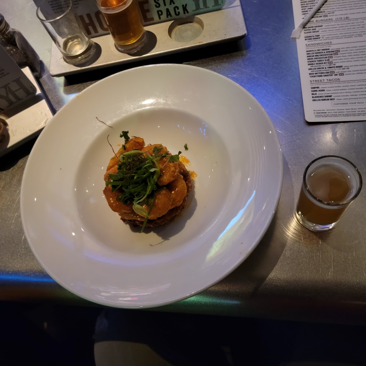 Lemon pepper & whiskey peppered wings were damn good. Lemon pepper at places usually be too salty for me but these had the perfect amount of salt. Both flavors were fire! Had a great crisp & there ranch & garlic aioli are good. Lobster noodles were good too but I like my noodles with a snap to it. Jambalaya was good also.